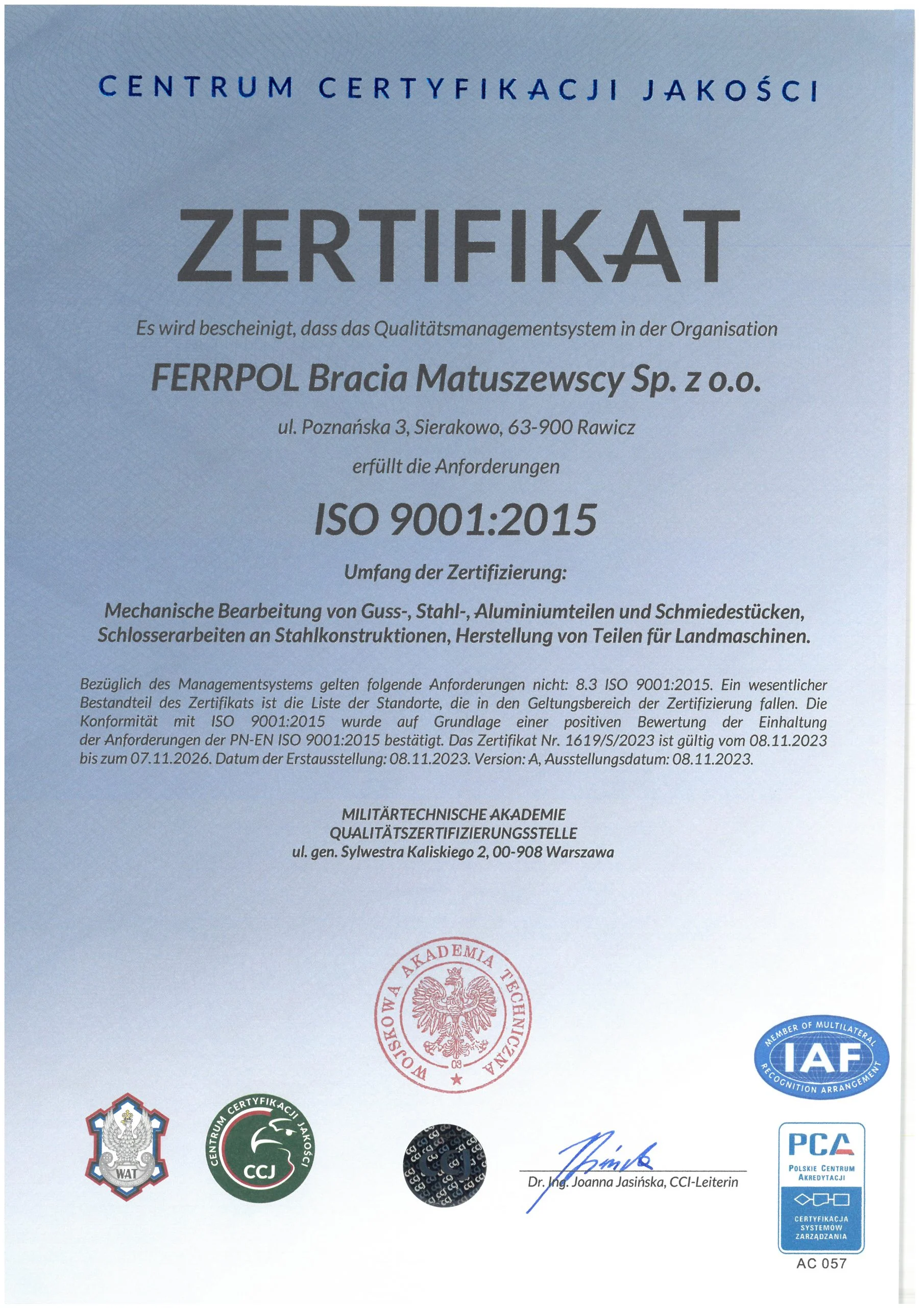 Downloads FERRPOL Downloads Dateien zum Herunterladen Machines specification update 2023 ISO 14001 DE ISO 9001 DE ISO 9001 ANG ISO14001 PL AQAP ANG ISO 14001 DE AQAP PL ISO9001 DE ISO14001 ANG